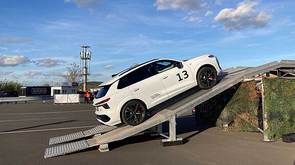 Über eine Brücke mit Steigungs- und Gefällestrecke mit bis zu 60 % Steigung, durch eine Schrägfahrpassage mit bis zu 25° seitlichem Kippwinkel, über Verschränkungspassagen und eine Fahrzeugwippe. Hier wird Offroad-Technik hautnah spürbar.