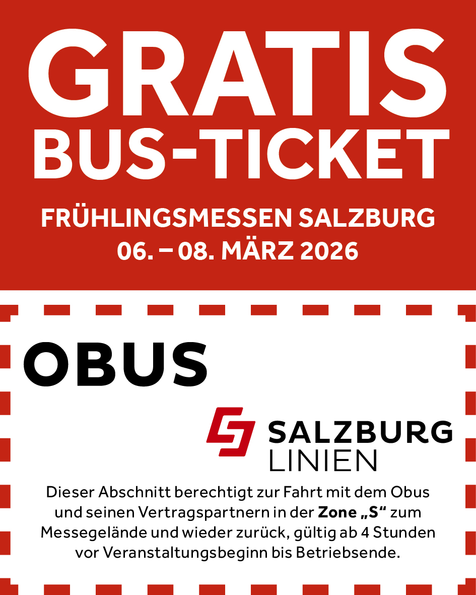 Ihr Automesse Salzburg Tagesticket berechtigt zur gratis Anreise mit dem Salzburger Obus zum Messezentrum Salzburg.